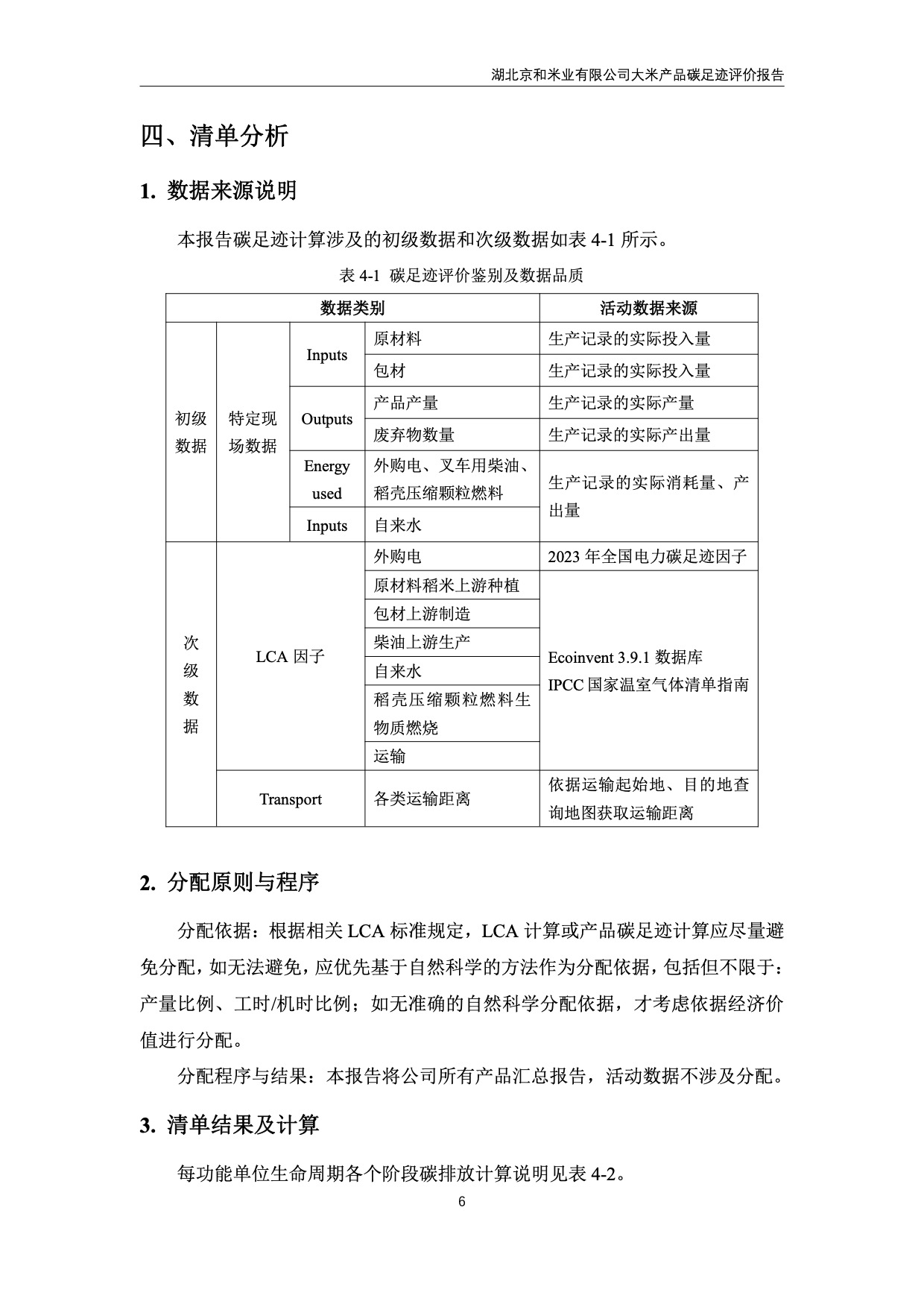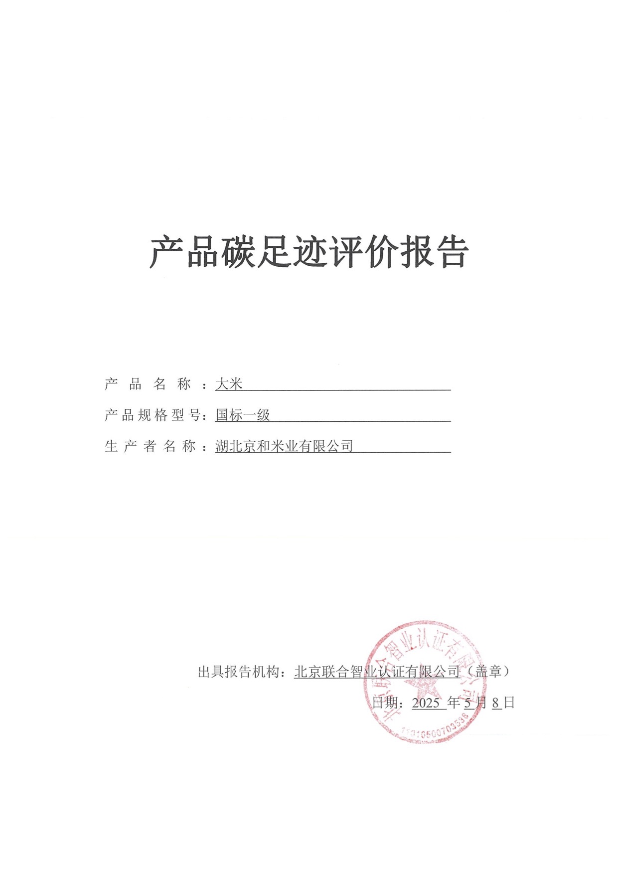 湖北京和米業(yè)有限公司-碳足跡評價報告
