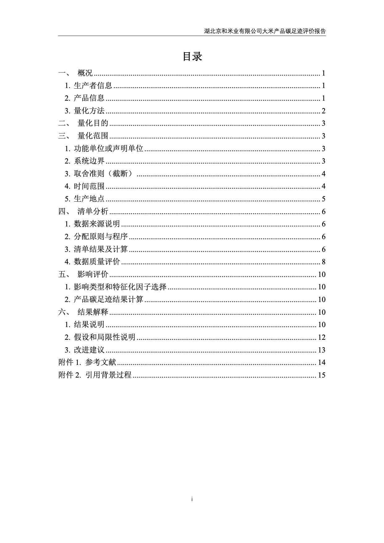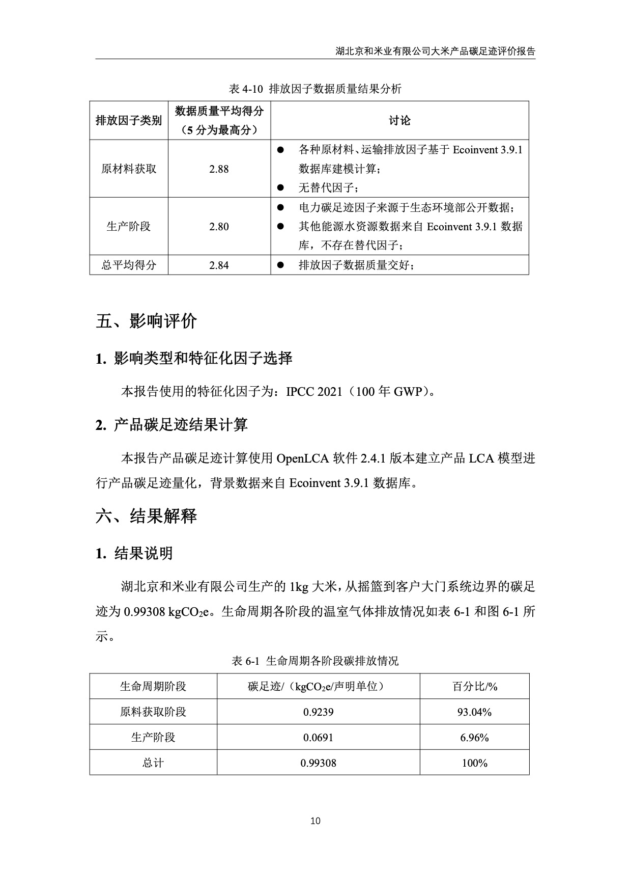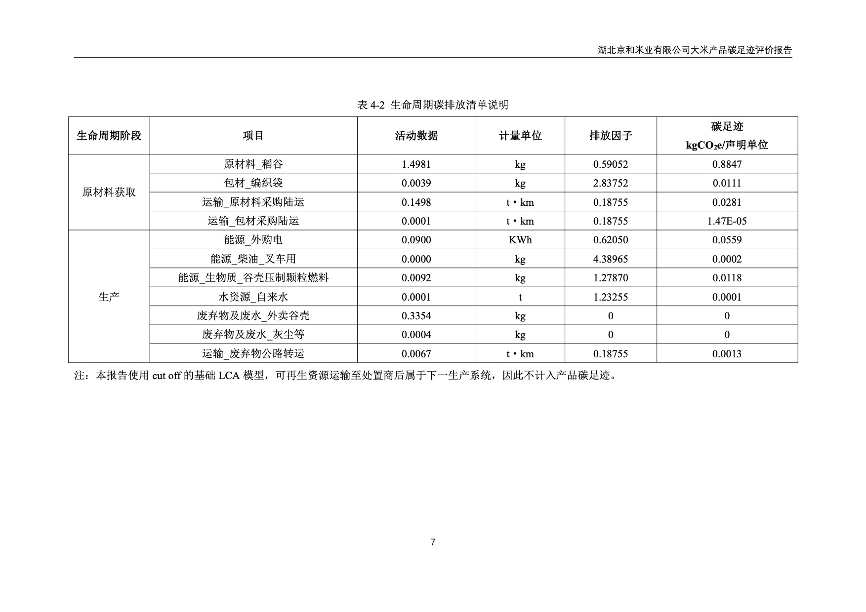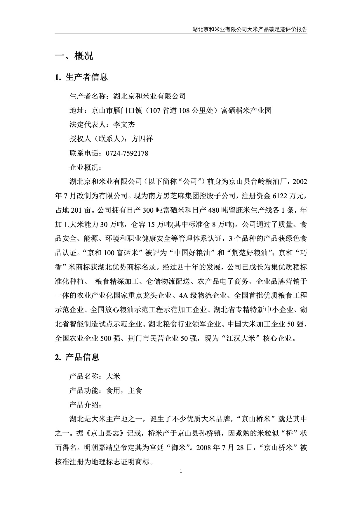 湖北京和米業(yè)有限公司-碳足跡評價報告